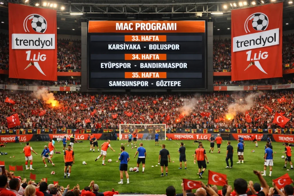 Türkiye Futbol Federasyonu tarafından yapılan açıklamaya göre, Trendyol 1. Lig’deki 33, 34 ve 35. haftalara ait maç programı netleşti. Futbolseverler için büyük heyecan yaratan bu maçlar, önemli karşılaşmalara sahne olacak. 33. Haftada Neler Olacak? (3-5 Nisan 2026) 3 Nisan Cuma: 14.30’da Adana Demirspor, Manisa FK ile Yeni Adana Stadyumu’nda mücadele edecek. Aynı Gün: Saat 17.00’de